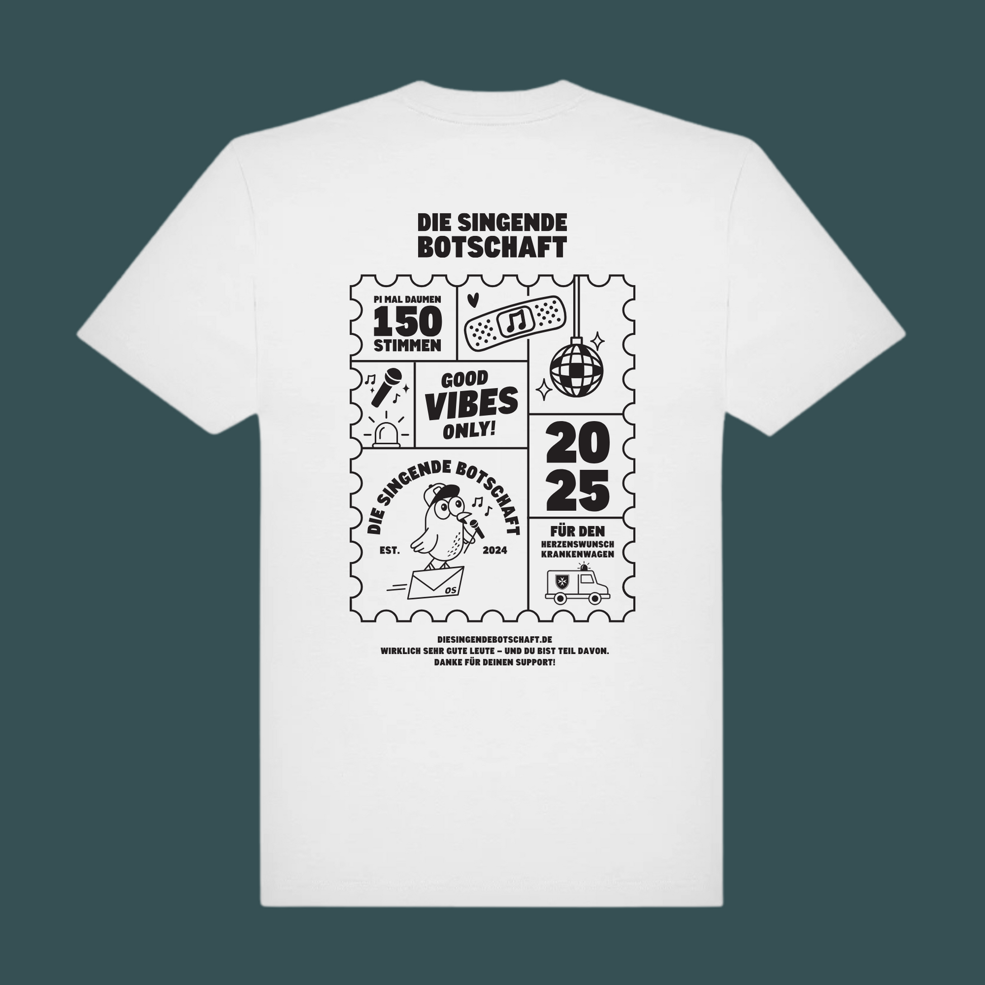 Dieses T-Shirt als sichtbares Zeichen deines Supports zur Singenden Botschaft und unserer musikalischen Mission.