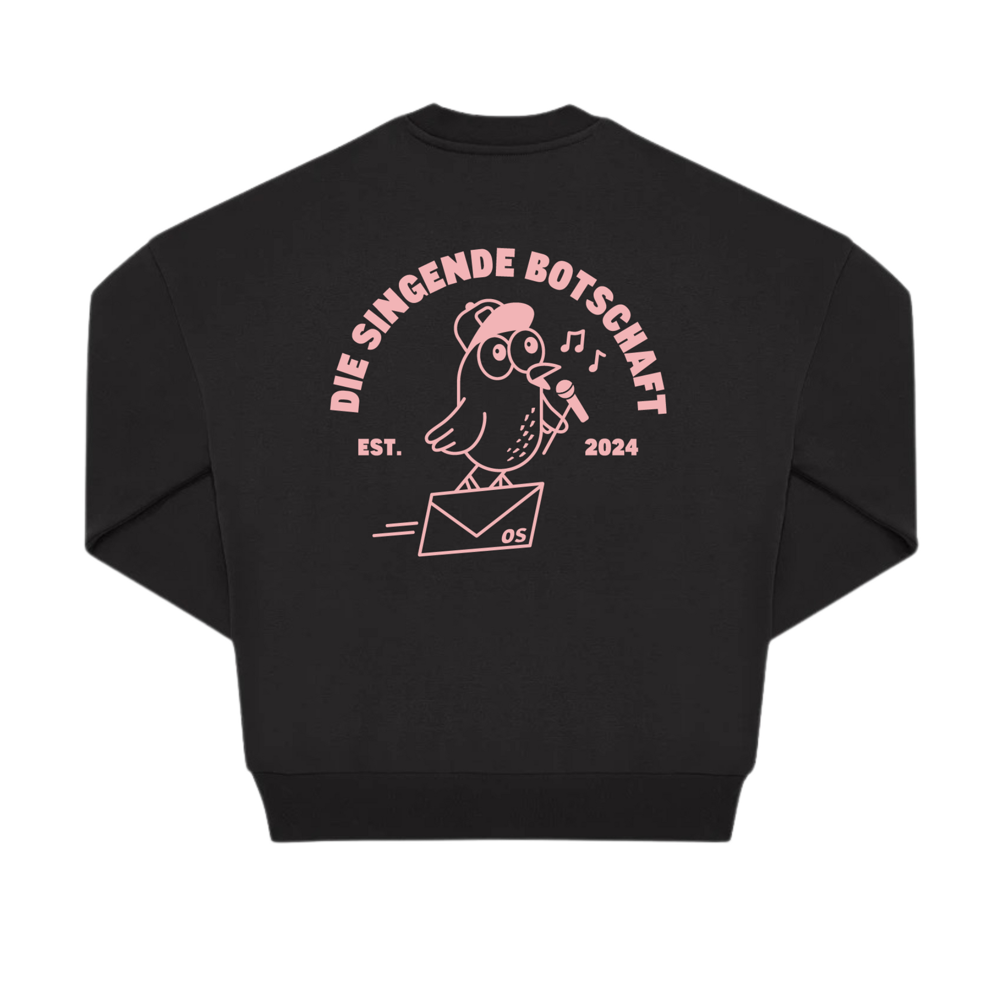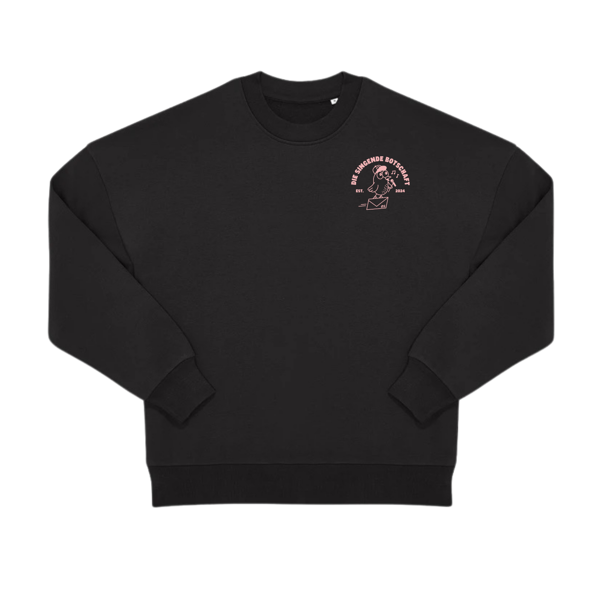 Mit dem charakteristischen Logo vorne und großem Rückenprint in zartem Rosé auf Schwarz trägst du unser Motto nach außen: Wir singen. Wir überraschen. Wir verbinden.